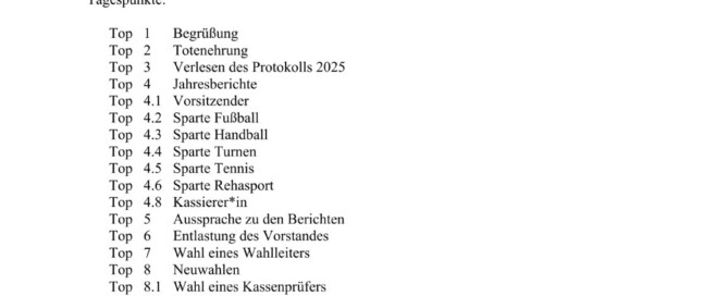 Einladung außerordentliche Mitgliederversammlung Hauptverein 12.09.2025 Gallerie Einladung außerordentliche Mitgliederversammlung Hauptverein 12.09.2025 Sparten, Vorstand Einladung außerordentliche Mitgliederversammlung Hauptverein 12.09.2025 Von Admin TSV Jahn|2025-08-15T14:02:41+02:00August 15th, 2025|Sparten, Vorstand|0 Kommentare Weiterlesen